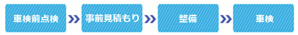 | ① 車検前点検 | 車検時のチェック項目を事前にチェックします。その際、車検合格のため、 整備が必要な箇所、修理の必要な箇所を確認いたします。 |