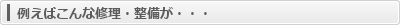 | ・ガラス修理 | ・エアコン修理 | ・各種部品、パーツ交換 | ・バッテリー交換 | ・内装修理 |